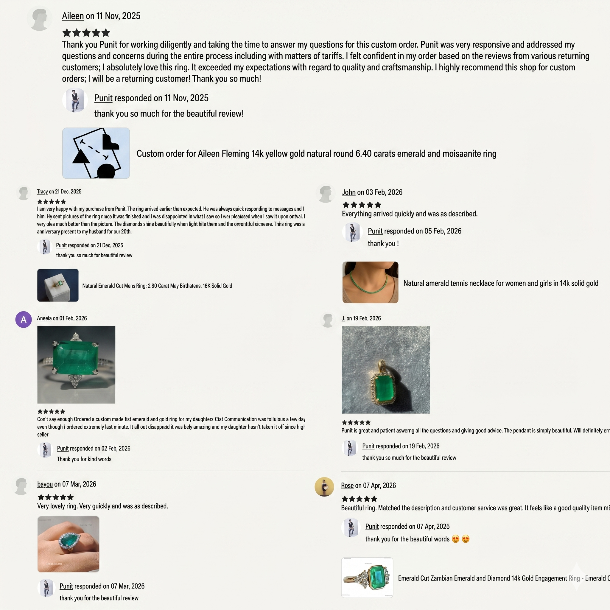 We specialize in handcrafted gemstone jewellery, including emerald and diamond collections, rings, necklaces, earrings, and custom designs.