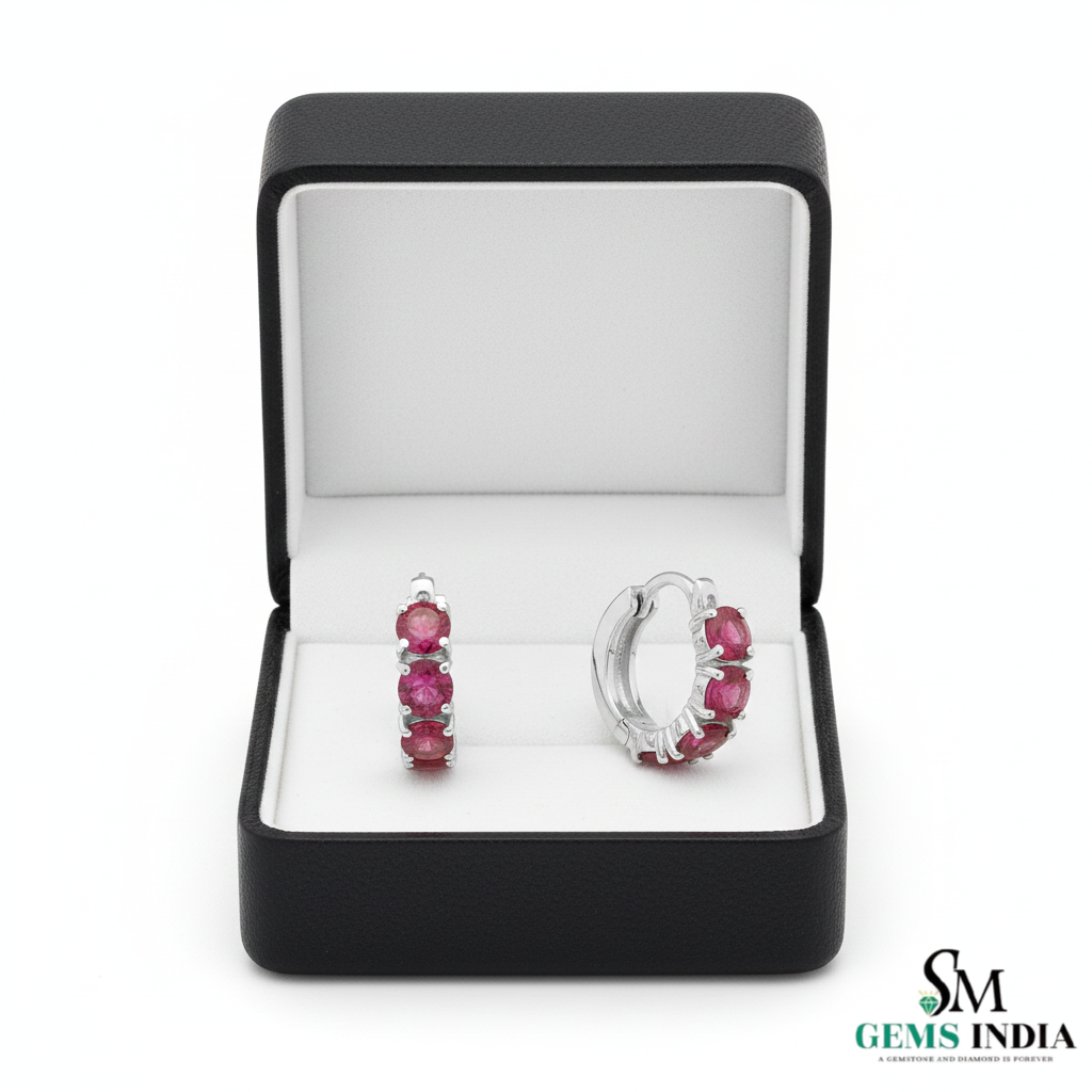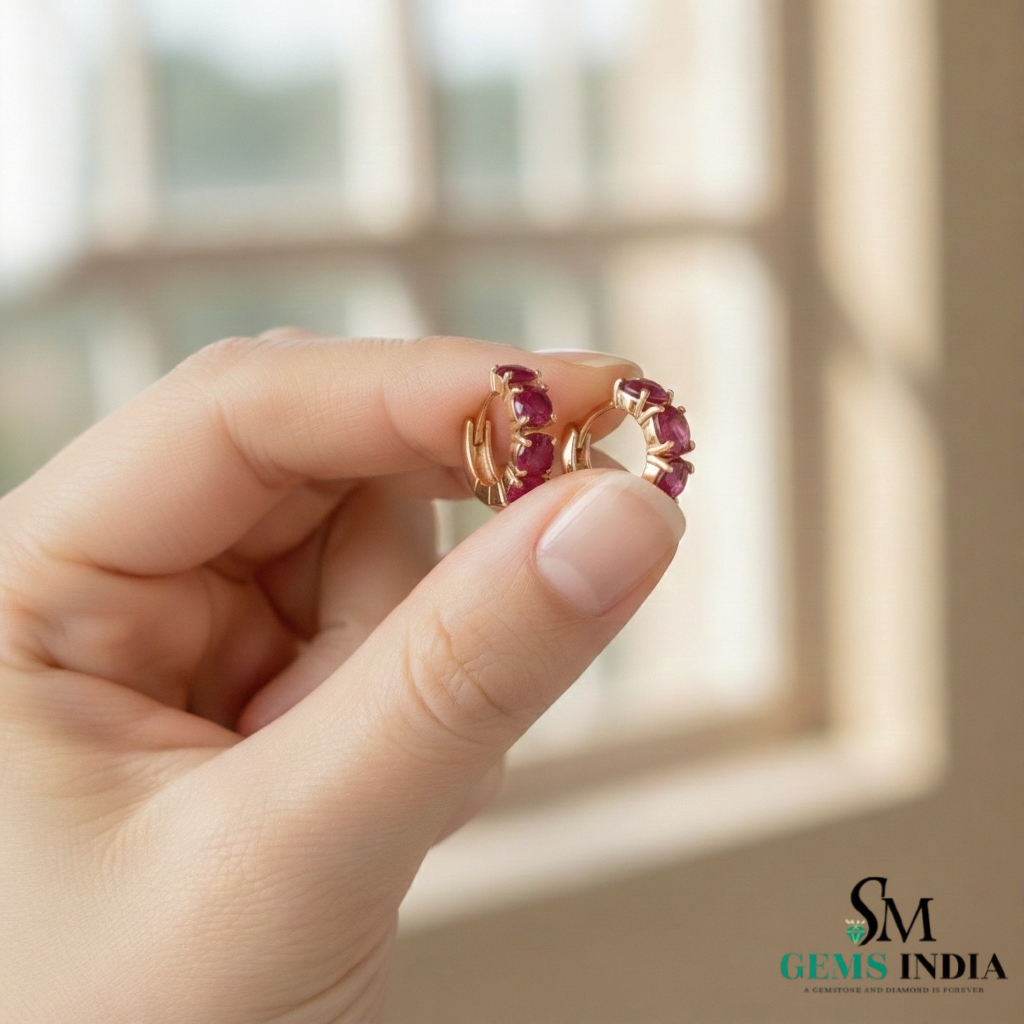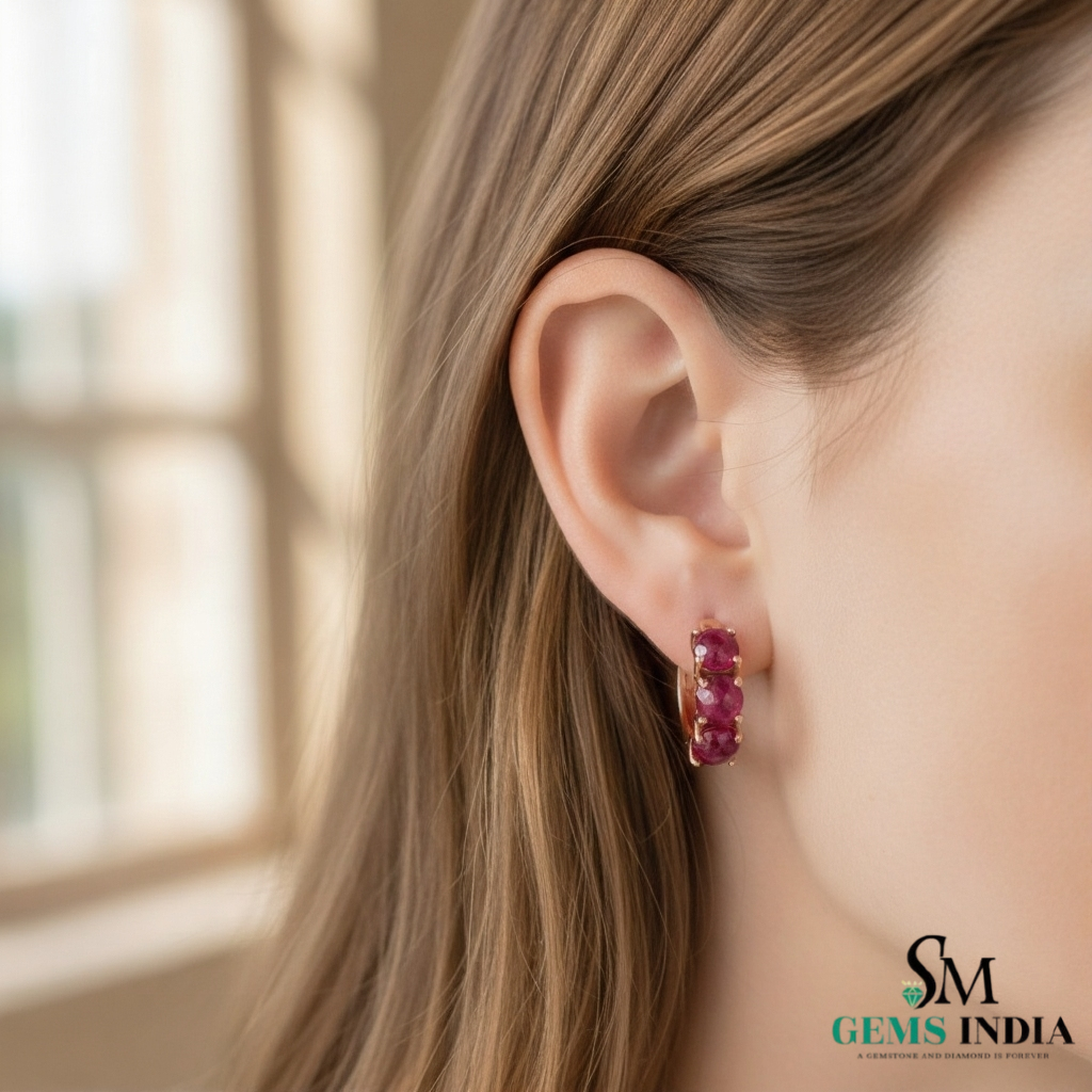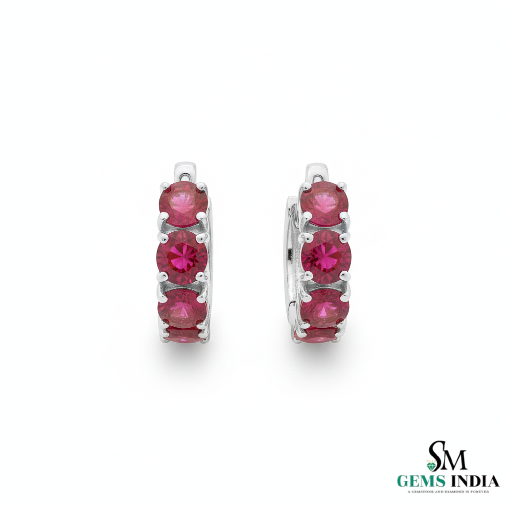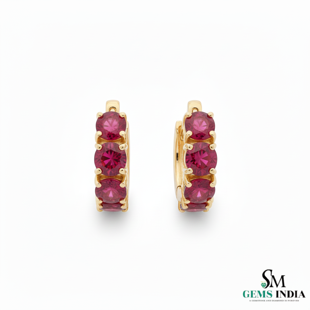 Round Natural Ruby Huggie Hoop Earring Elegant Everyday Hoops